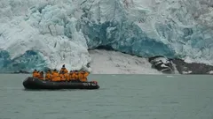 Calving Glacier Ittuaramiit Fjord (Southern Skjoldungen Fjord) seen from aboard Seabourn Venture