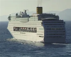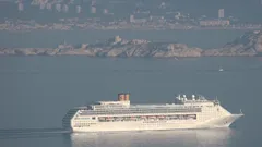 AIDAperla leaves Marseille, seen from Fort Niolon