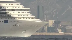 AIDAperla leaves Marseille, seen from Fort Niolon