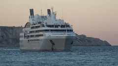 AIDAperla leaves Marseille, seen from Fort Niolon
